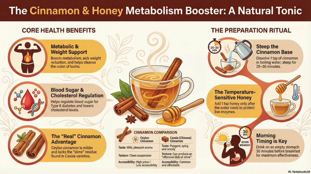 1. Honey is added only about half an hour after mixing the cinnamon and boiling water. Step 2 allows the drink to cool down to a certain extent before adding honey. Hot water destroys the live enzymes in the honey. For more tips on how to handle and store honey, read “Honey Storage Tips”.